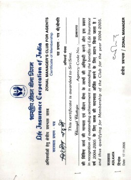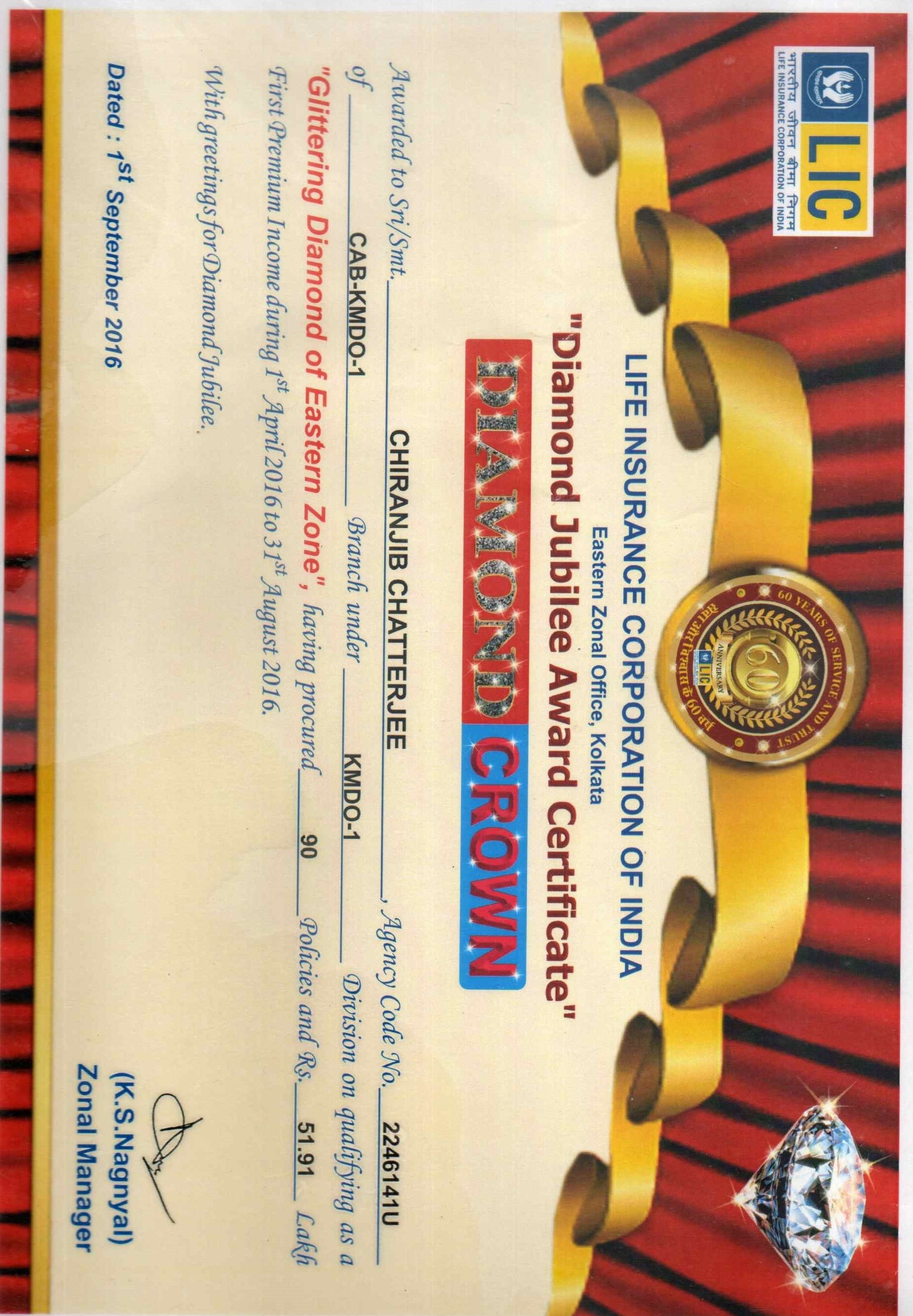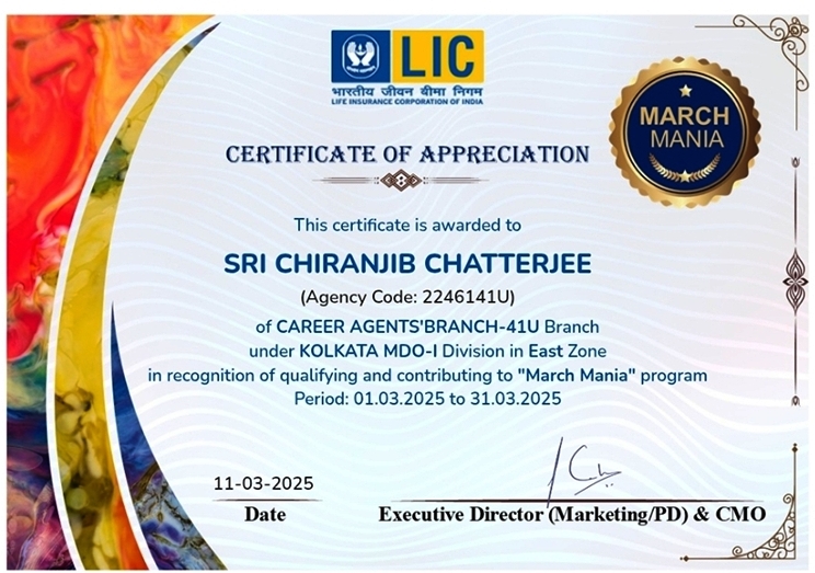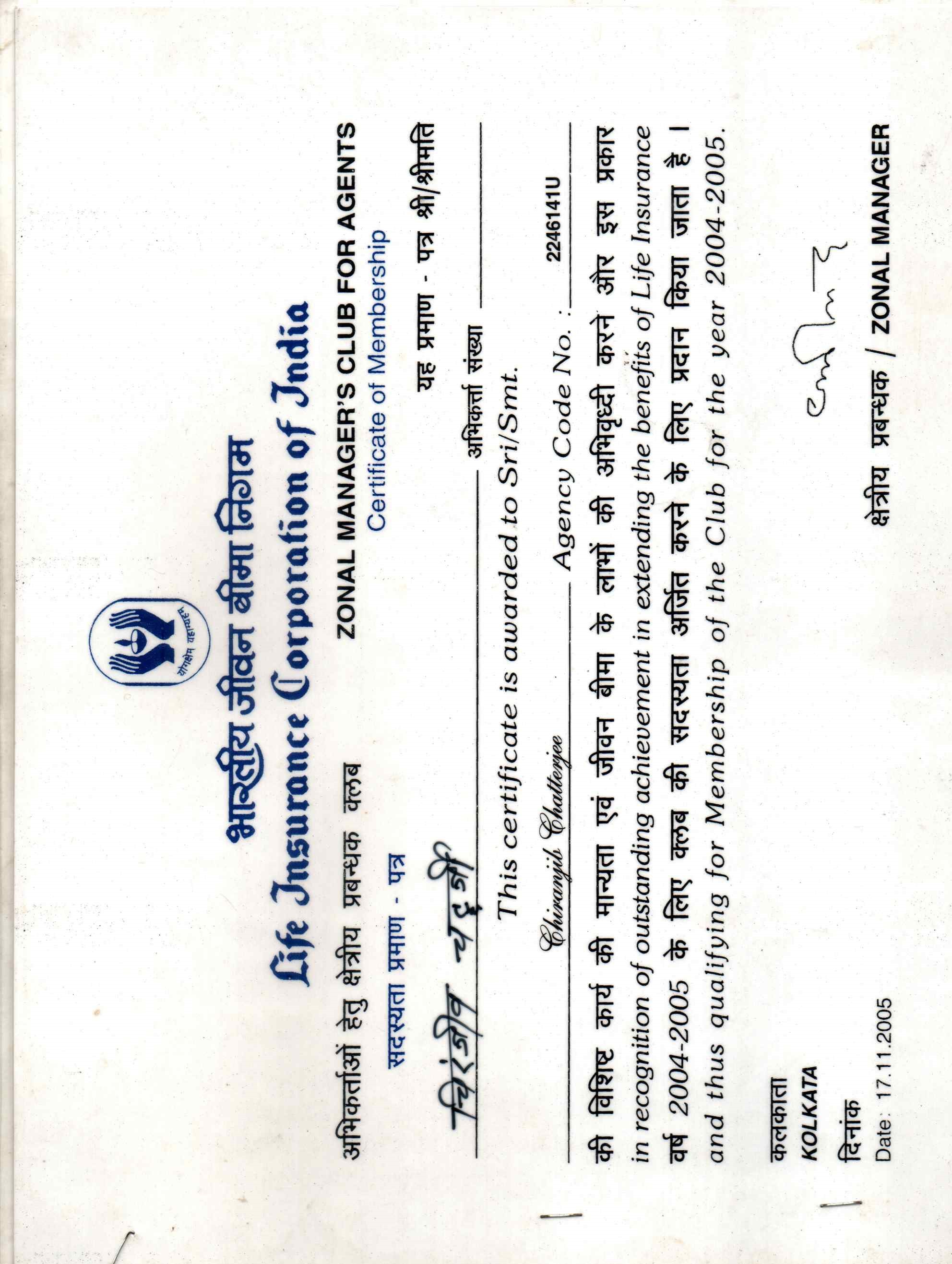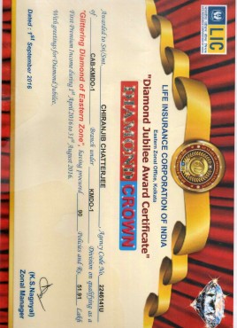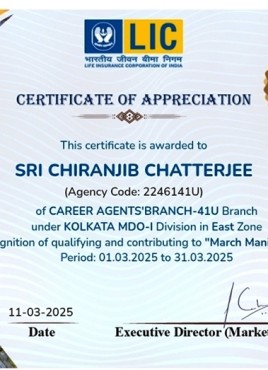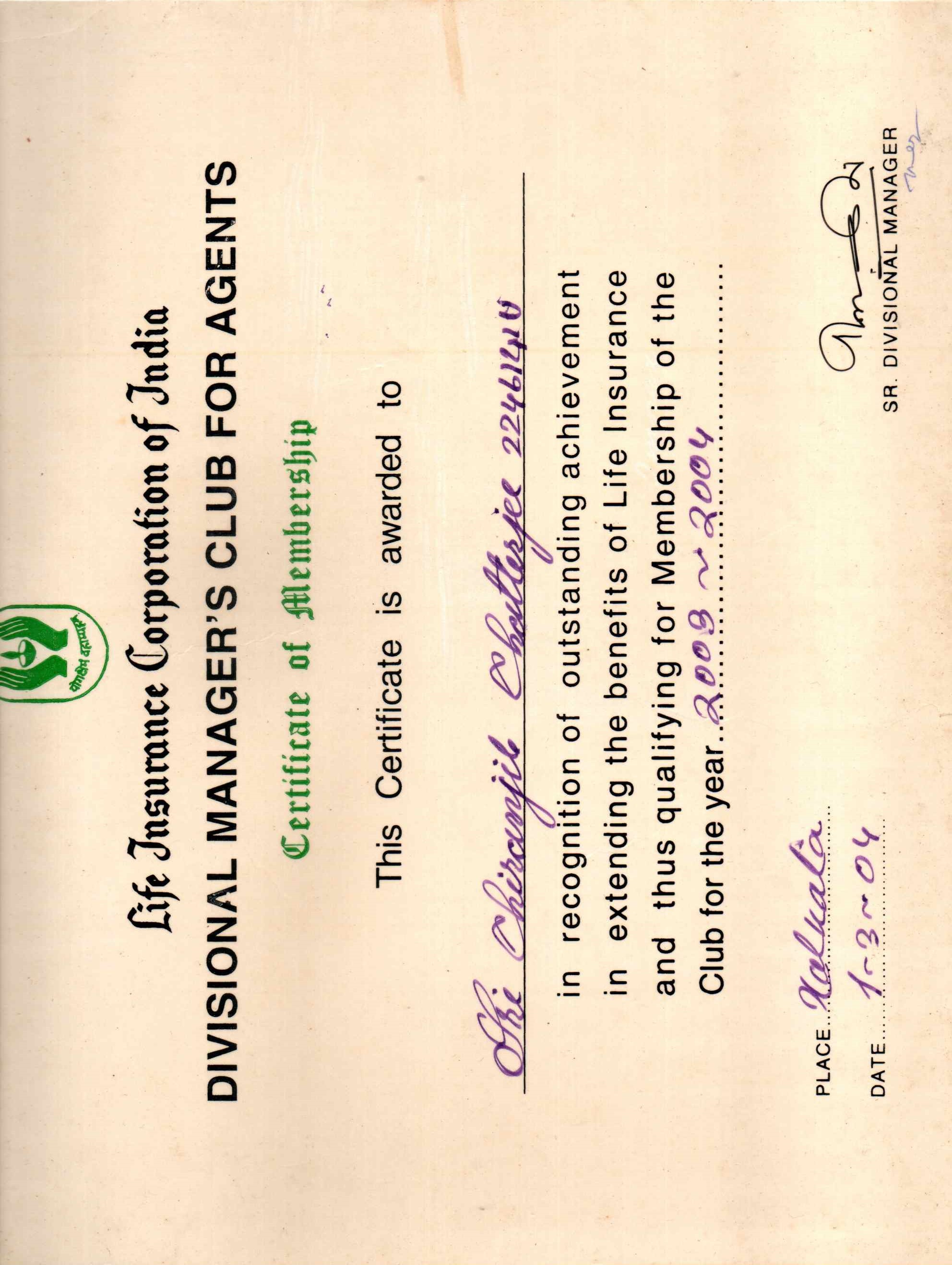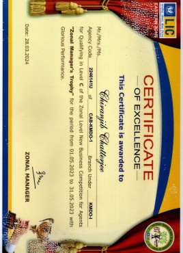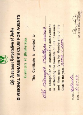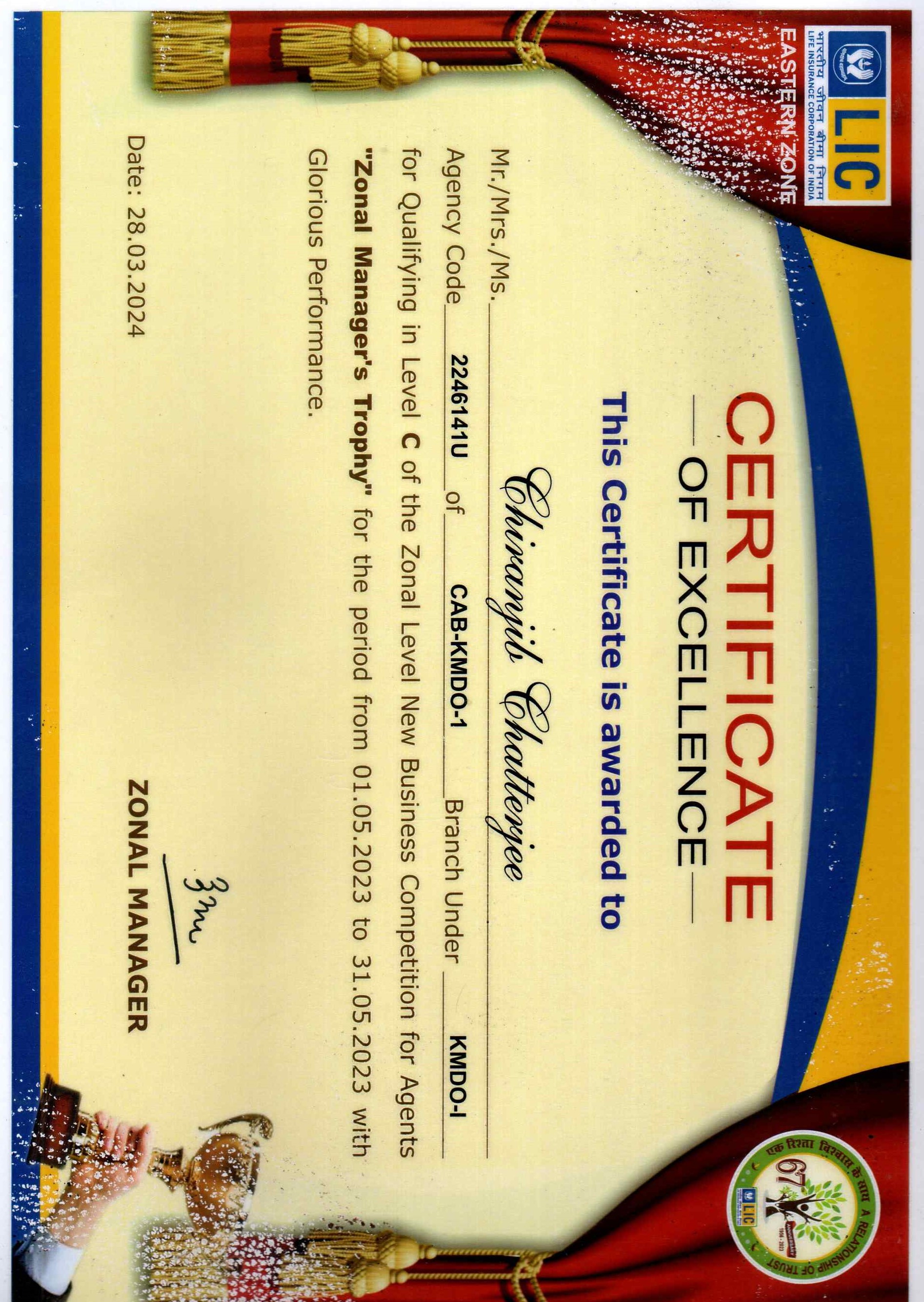 Congratulations Certificate From Managing Director & Executive Director LIC Central Office Mumbai