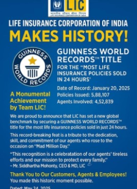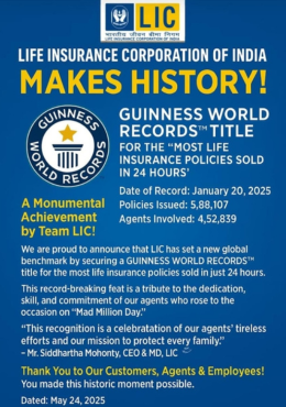 Lic Of India enters Gunnness World Record 21 20.01.2025