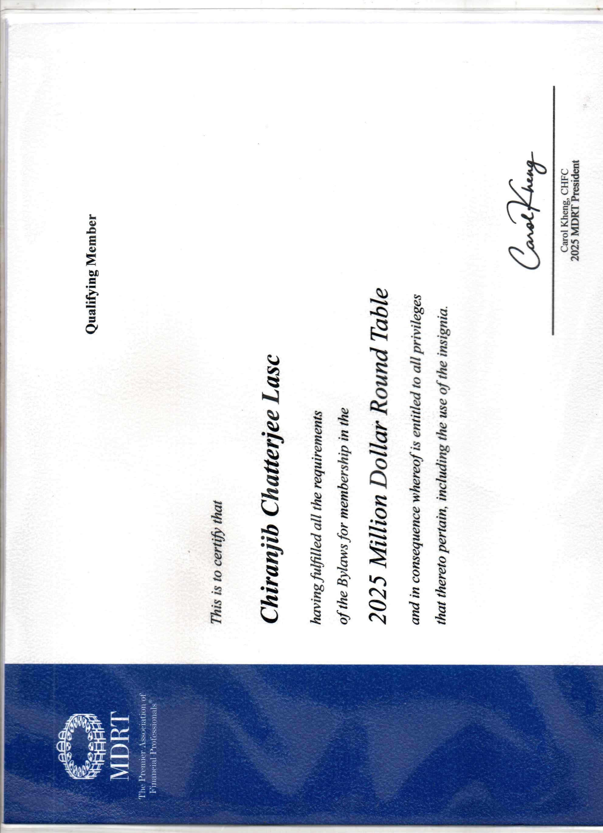 MILLION DOLLAR ROUND TABLE CERTIFICATE 2025 USA